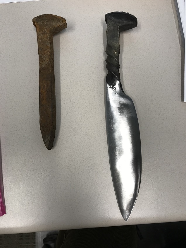 The material nail was full of red rust on my right hand, and the forged & ground knife of mine on my left hand is shining in silver color. This is eye opening experience.